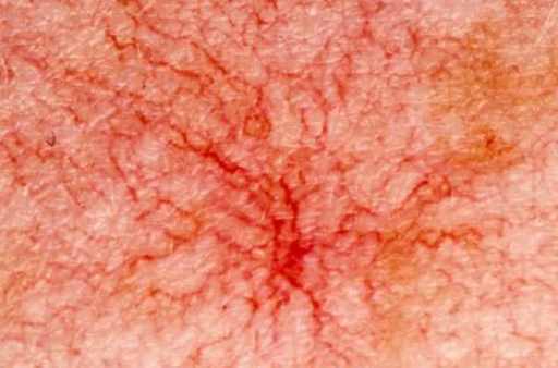 피부 아래 혈관에 생기는 거미줄처럼 보이는 흔적은 간 질환의 특징적인 징후입니다.