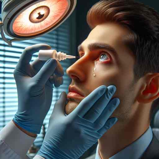 안약을 넣는 모습 검사 결과 안압 상승으로 인한 시력 상실이나 시신경 손상의 징후 없이