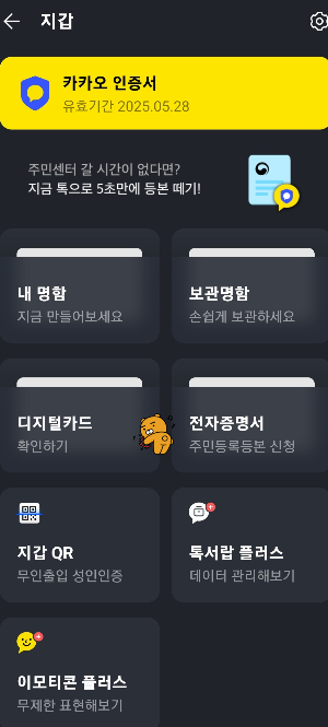 카카오톡 지갑에서 바로확인이 가능하니 급할 때 주민센터에 직접 가지 않고