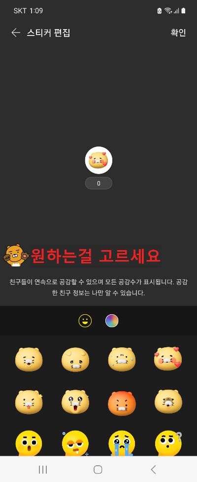 손가락 하트눌러요 4. 원하는 모양의 스티커를 선택해 줍니다.