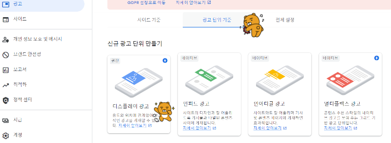 1. 먼저 애드센스 광고탭에서 광고 단위 기준을 선택해 주세요