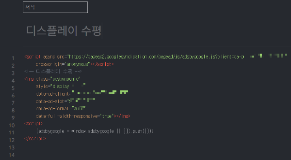 여기까지는 애드센스에서 디스플레이 광고 코드를 만드는 방법입니다.