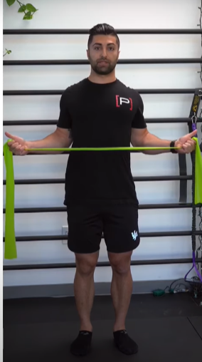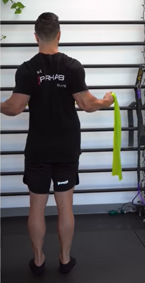 밴드를 통해 등 근육을 스트레칭 해줍니다.