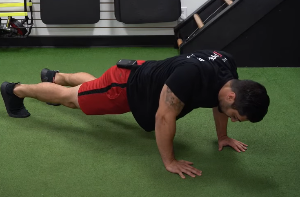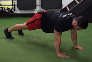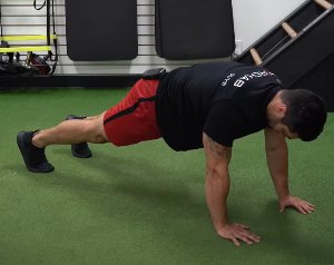 견갑골을 접었다 폈다 한다는 생각으로 푸시업을 합니다.