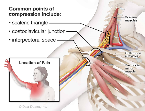 흉곽출구증후군 이해를 돕기 위한 이미지(memphistotalhealth 홈페이지) 흉곽출구증후군(TOS)에는 두 가지 유형이 있습니다.