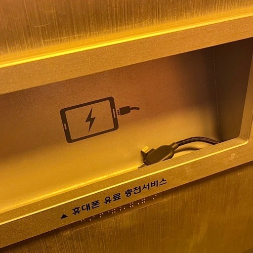 KTX 산천은 모든 좌석 앞 하단에 충전기 가 있습니다.6. 수유실, 자판기